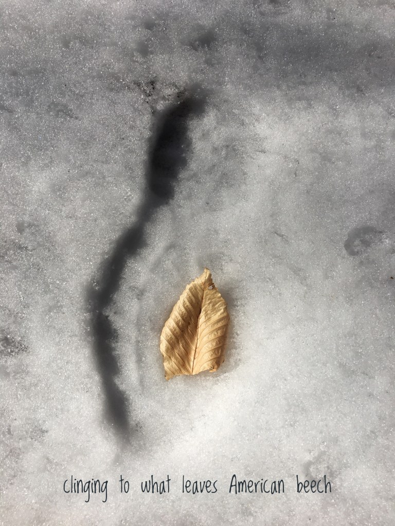 American beech (Fagus grandifolia) trees often retain their dead leaves for much of the winter. The ten-dollar word for that is marcescence.