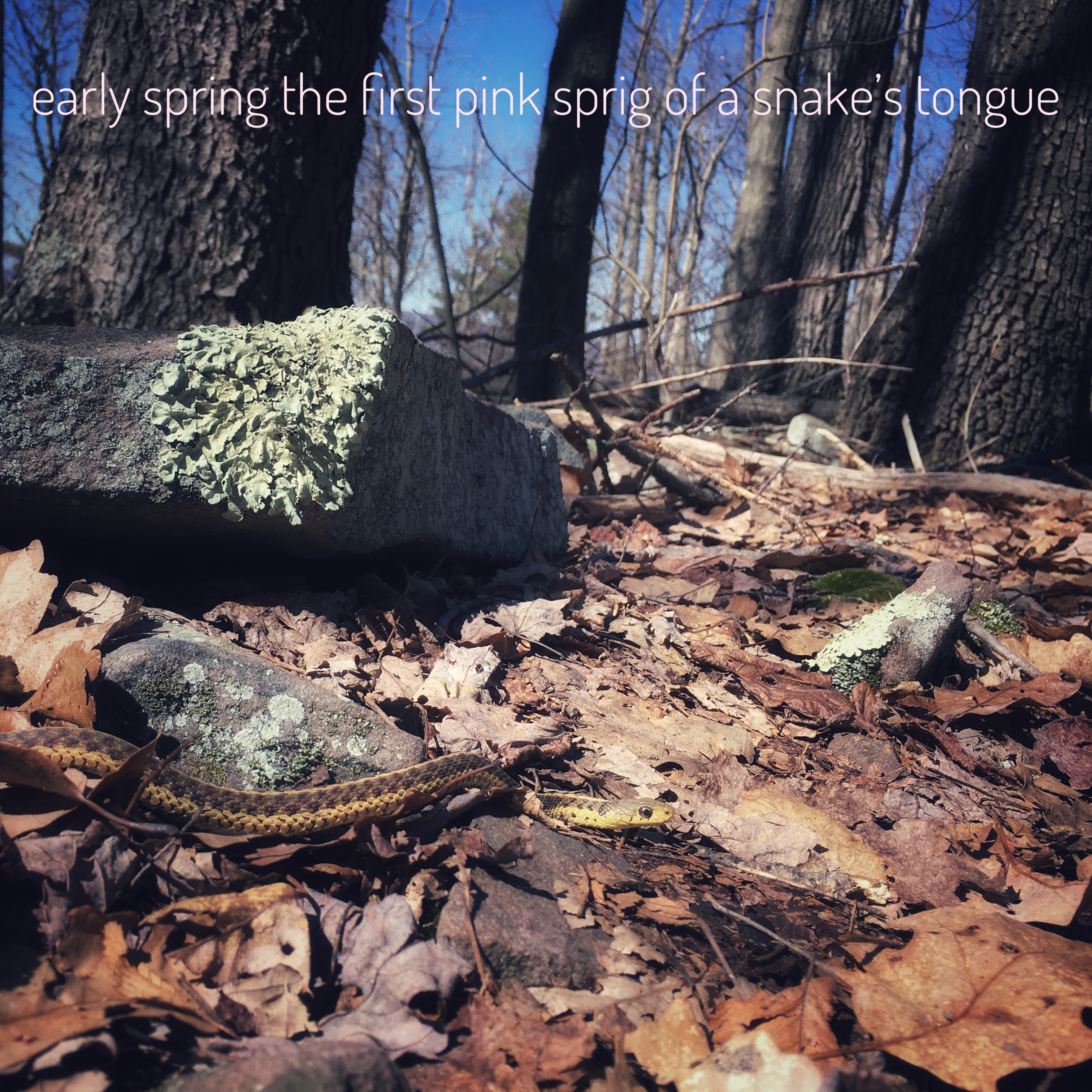 This garter snake was out right on top of the windy ridgetop two days ago, and as I long as I watched it, it did not in fact flick its tongue at me. So that first will have to wait.