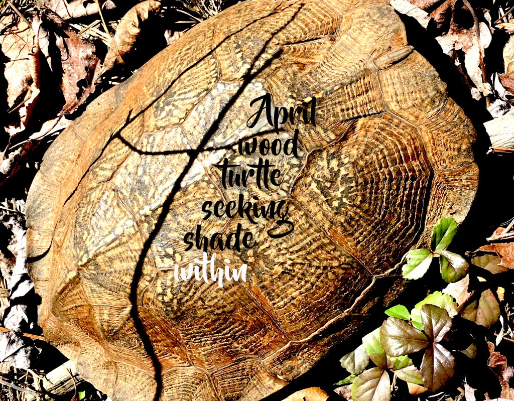 This wood turtle was out and about in a place near here called the Barrens a little more than a week ago, so possibly actually late March. It’s all a goddamn blur.
