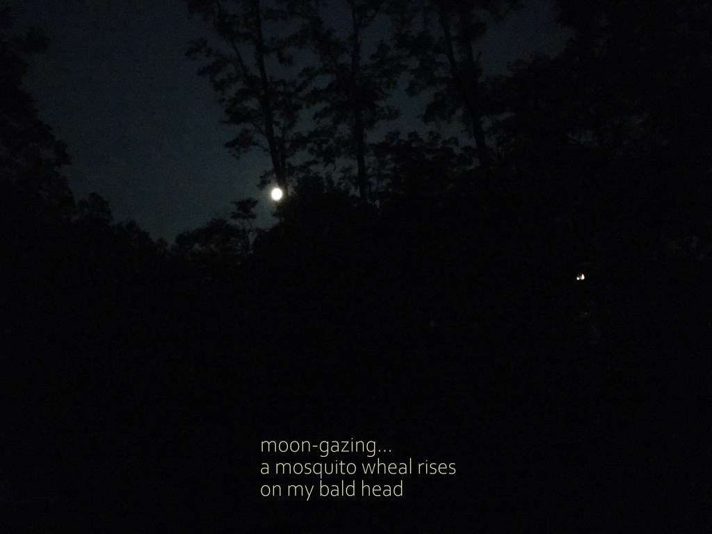 Hadn’t intended to start a series, but here we are with the second moon-viewing-with-insects haiga in a row. It helps of course that I actually managed to get a half-decent shot of a moonlit night for once.