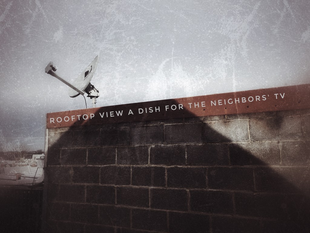 Not sure I’ve used one of Snapseed’s “grunge” filters on a haiga before, but I felt the need to junk up the sky for this one. I’m still pondering alternate haiku possibilities, though. Rather than focusing on visual input (the view), for example, should I lean into the religious aspect of holding up a dish to the heavens? Something like
