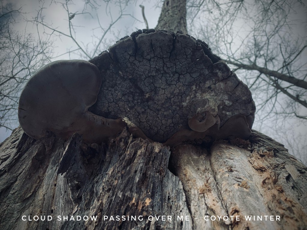 A mid-February thaw. The patches of snow that remain are criss-crossed by coyote tracks; it’s their courtship season. I’m sitting against a ridge-top tree near the end of the mountain, typing these notes into my phone. When I stand up, I see the large coyote that’s been watching me—who knows for how long—from 50 feet away.