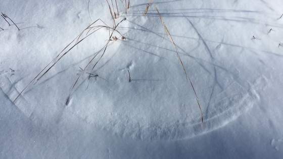 three corkscrew leaves stuck in the snow